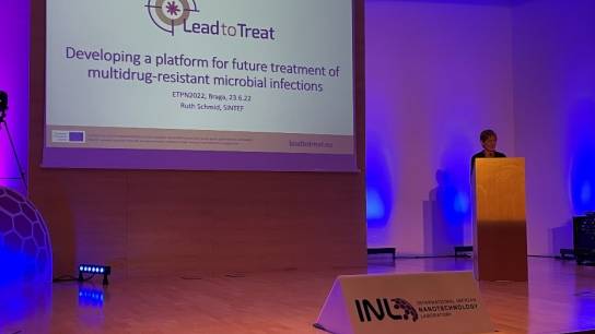 Ruth Schmid and Andreas Åslund from SINTEF attended the 17th annual event of the European Technology Platform on Nanomedicine (ETPN) which took place June 20-23rd in Braga, Portugal. ETPN2022 is a conference bringing together scientists, technology providers, entrepreneurs, industry, clinicians, and policy makers, all of them acting together for the development of great medical innovations from nanotechnologies and emerging health technologies. This event was an excellent opportunity to present the LeadtoTreat project to the broader community. During the presentation, Ruth pointed out that LeadtoTreat is open to include promising antibiotic compounds developed in academia or industry with poor drugability due to low solubility, high serum binding and/or unfavorable biodistribution and encouraged antibiotic developers with suitable compounds to contact the coordinator.